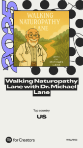 The Podcast Walking Naturopathy Lane was viewed most in the US and the episode viewed the most was the first episode The Principles that Guide Naturopathy Lane. I will wrap the year with the season 1 finale right after Christmas with a 30-minute episode on ways to recover from the weight gain of the holidays. These can be seen on both YouTube.com and Spotify.com